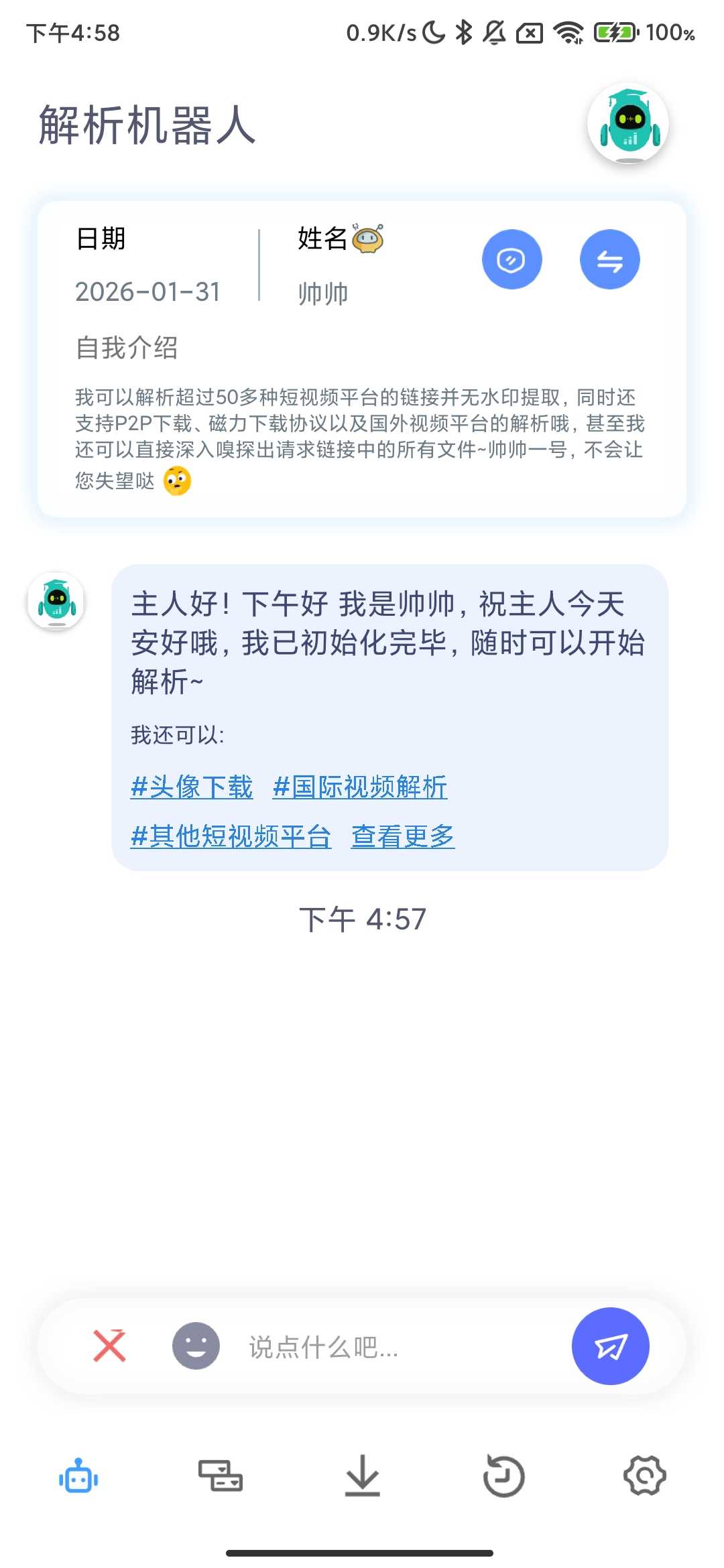 软件名称 解析机器人 软件大小34.24mb 软件版本1.1.7 适用版本安卓 软件介绍 功能全面的视频解析软件,50 平台短视频一键下载存本地,无水印提取、无损音乐下载、电商视频保存全搞定,界面清爽,体积超小巧. 链接: ...
