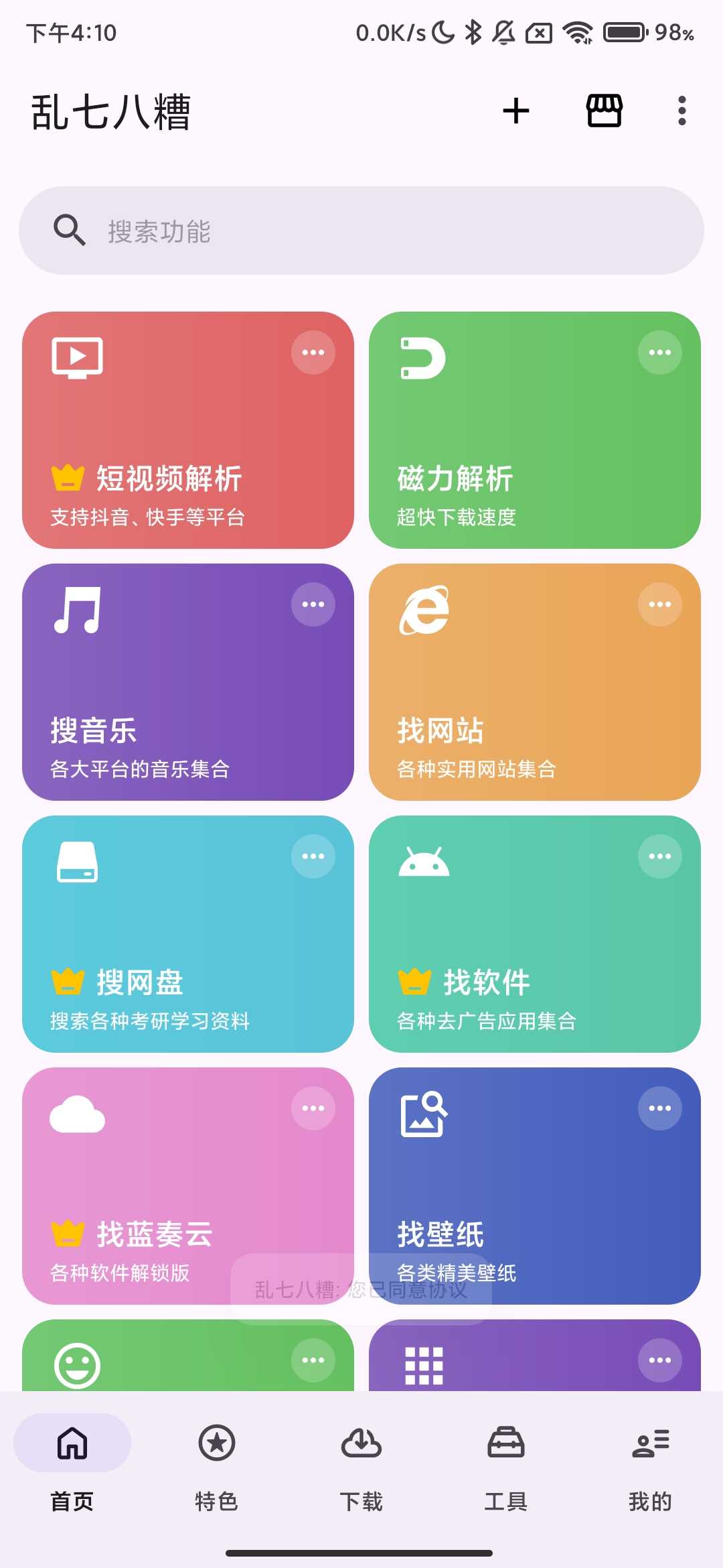 软件名称 乱七八糟工具箱 软件大小72.05mb 软件版本1.4.18 适用版本安卓 软件介绍 超强工具合集,多类实用工具一体整合,文件管理、系统优化、数据恢复、图片编辑全都有,一站式解决,轻松满足工作生活需求,效率飙 ...
