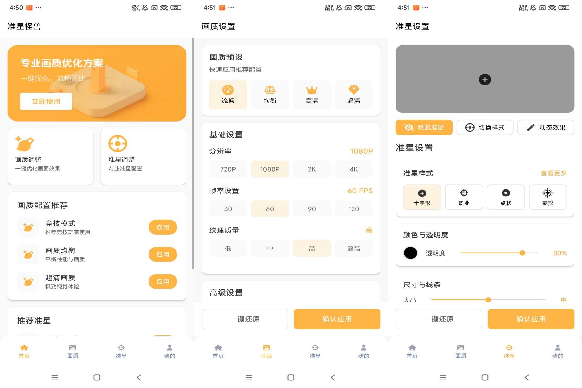 【软件名称】:准星怪兽 【软件版本】:11.73 【软件大小】:20.40M 【软件介绍】:一款手机准星画质App,游戏优化,精准射击!提供游戏准星设置、画质优化、游戏辅助等功能,让你提升游戏体验,增强射击精准度。 ...