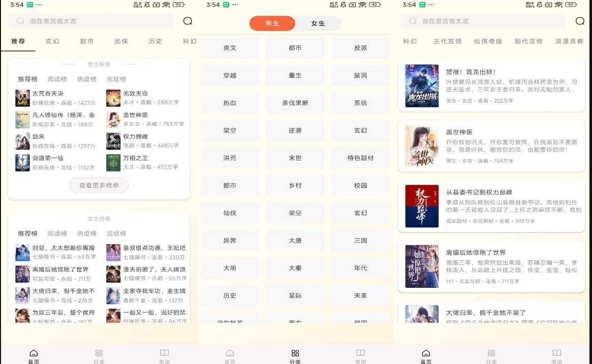 【软件名称】:番茄免费小说 【软件版本】:1.0.832 【软件大小】:10.97M 【测试系统】:小米 【使用说明】:一款手机免费小说App,海量阅读,畅享精彩!提供各类免费小说阅读,让你尽情阅读,享受阅读乐趣。界面 ...
