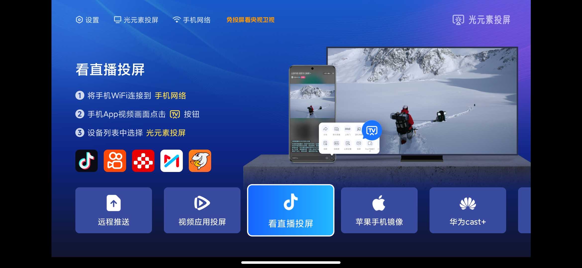 软件名称 光元素投屏 软件大小21.56mb 软件版本1.2.7 适用版本安卓 软件介绍 一款免费无广告投屏软件。完美兼容多协议投屏,苹果AirPlay、 DLNA、华为cast+主流投屏协议。无广告,投屏体验更流畅。(电视上安装后手机 ...