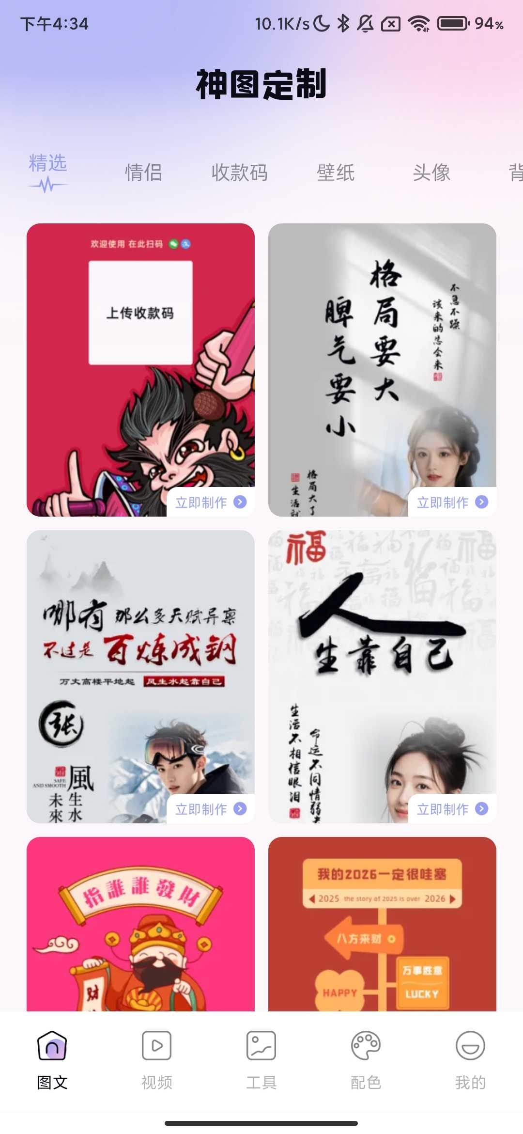 软件名称 神图定制 软件大小98.74mb 软件版本1.1 适用版本安卓 软件介绍 手机号登录解锁全站会员特权、支持财神爷收款码个性化定制、汇聚海量高清壁纸/头像/背景资源、风格涵盖潮流文艺/甜美萌趣等全分类、专属设计 ...