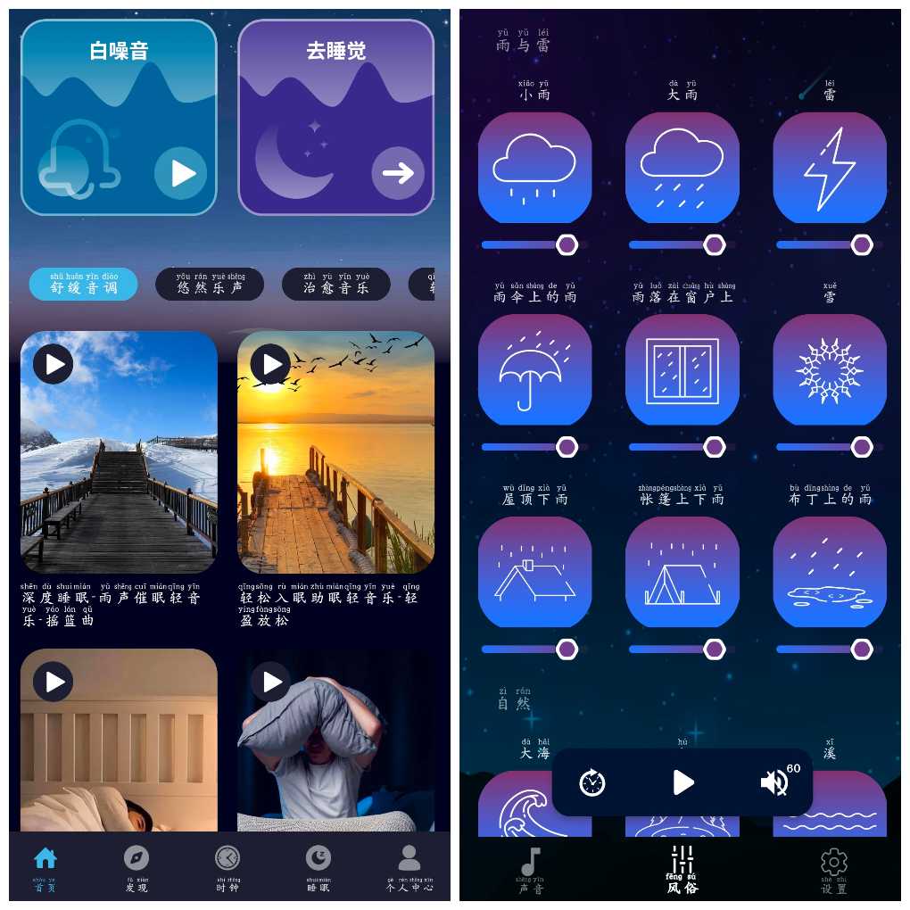 两款手机助眠App,舒缓助眠,宁静入睡!提供多种自然声音、白噪音、冥想音乐,帮助你放松心,改善睡眠质量,让你拥有一个好的夜晚。界面简洁,作便捷,是你的睡眠好帮手!(解锁VIP功能) 下载地址 : 链接和谐换另 ...