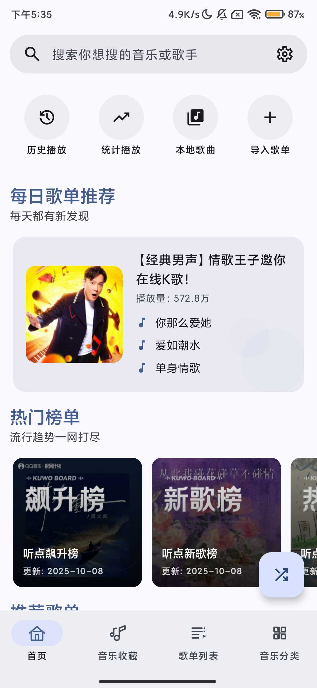 软件名称 听点音乐 软件大小10.85mb 软件版本1.0.2 适用版本安卓 软件介绍 听歌体验极为丝滑,堪称免费听歌利器,整合全网多平台曲库,涵盖排行榜、热门推荐与搜索功能,全程无需会员、无广告干扰,可免费听歌及下载 ...