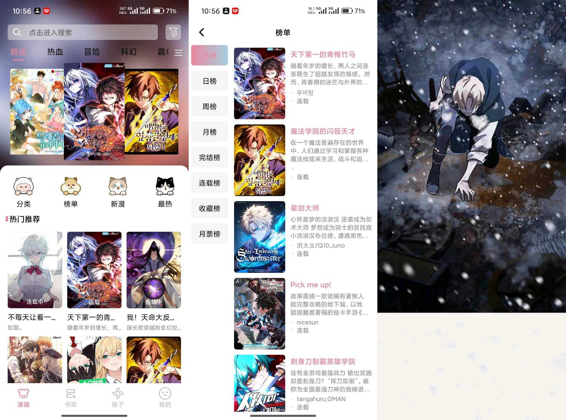 【软件名称】:StarSkt漫画 【软件版本】:1.0.0 【软件大小】:29.93M 【软件介绍】:一款专为漫迷量身打造的漫画阅读平台,聚合了多个平台的漫画资源,可以根据首页推荐或分类订阅喜欢的漫画,让你不会错过任何 ...