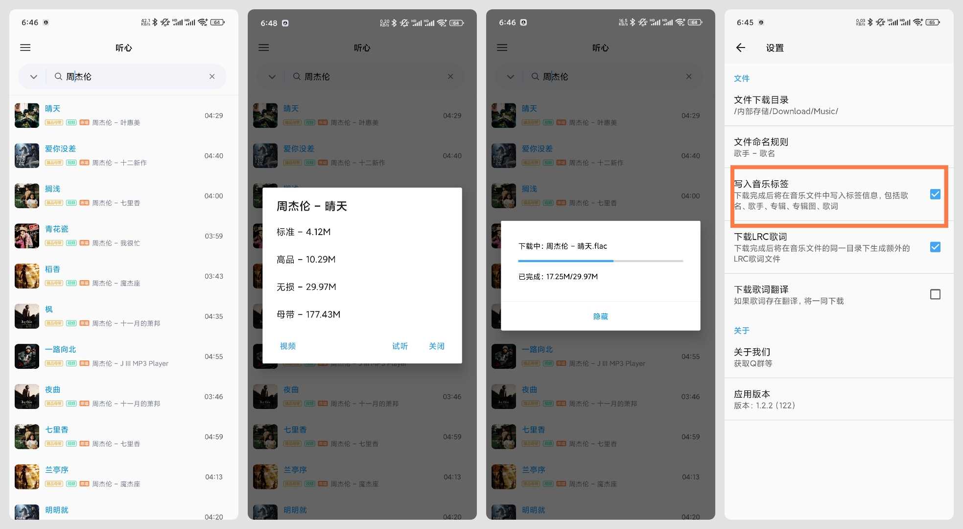 【应用名称】:听心 【应用版本】:1.2.2 【应用大小】:2.8M 【适用平台】:Android 【软件介绍】:听心是一款小巧但功能全面的无损音乐播放和下载应用。它不仅支持无损音乐的在线收听和下载,还提供了MV视频的 ...