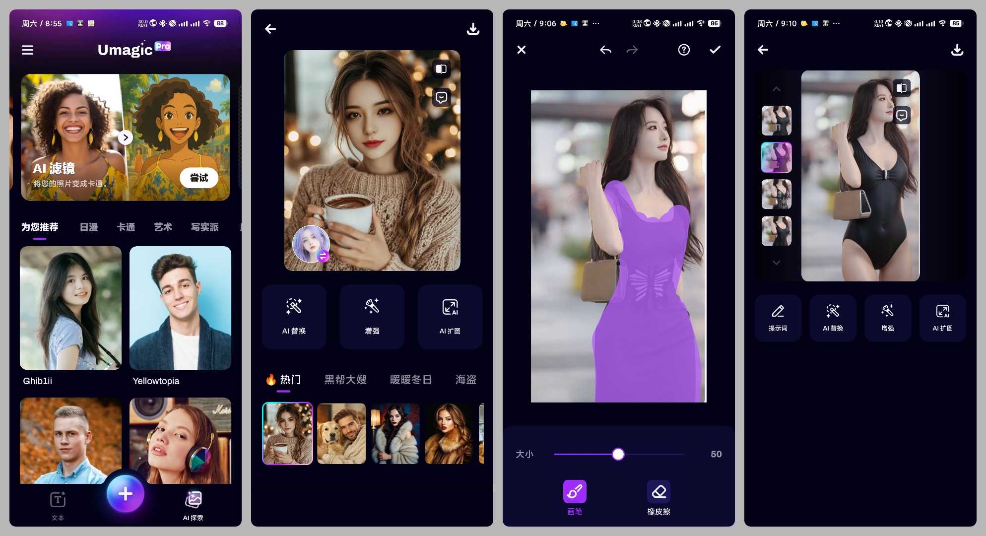 【应用名称】:Umagic 【应用版本】:1.7.9 【应用大小】:16 MB 【适用平台】:Android 【软件介绍】:Umagic Ai是一款体验极佳的AI绘画工具,它提供了多种创作方式,包括但不限于涂鸦成图、图生图、文生图、AI ...