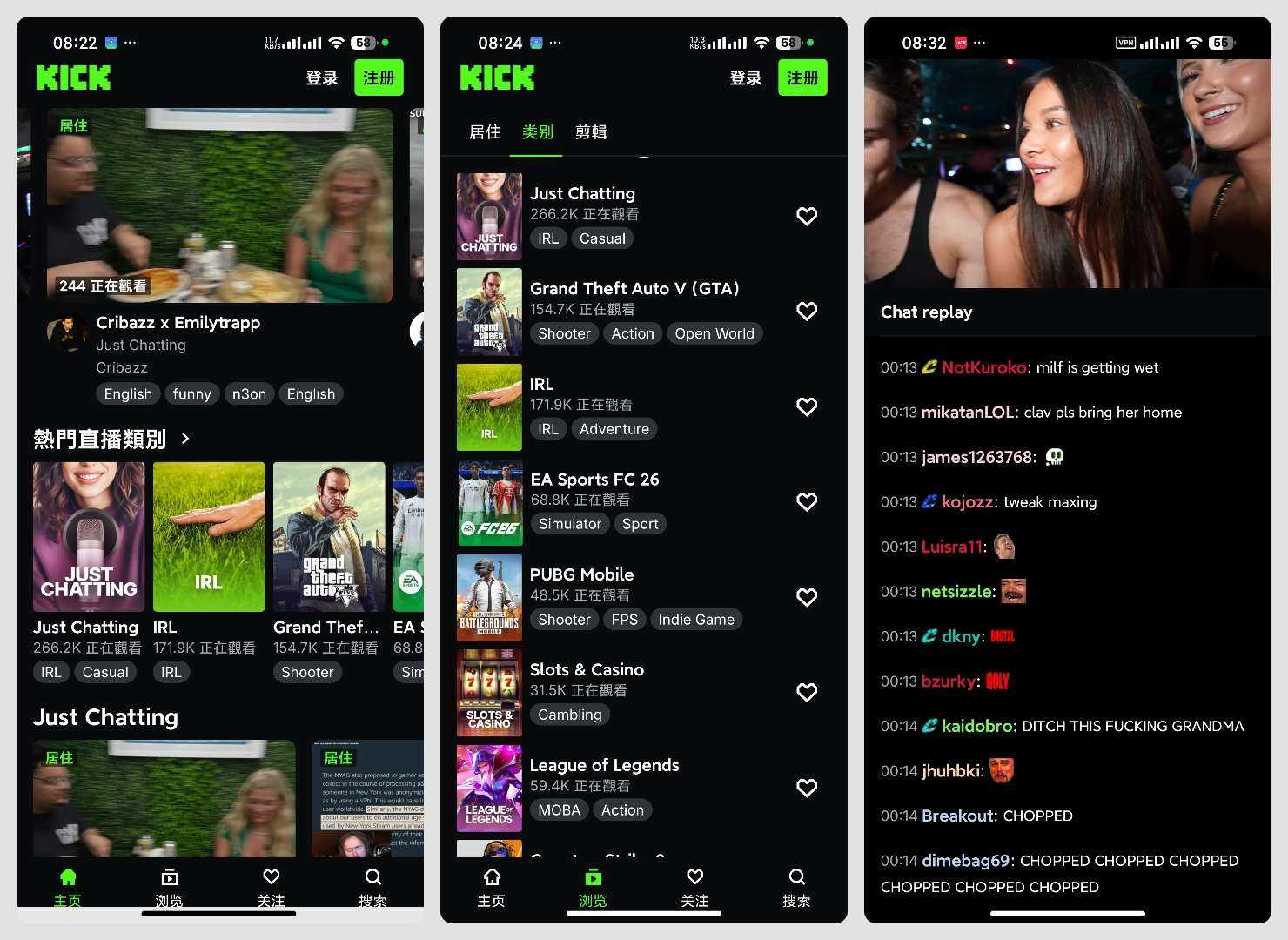 免登录🔥国内网可用 📢【应用名称】:Kick直播 🔔【应用版本】:40.13.4 👀【应用大小】:73 MB 🤖【适用平台】:Android ❓【使用说明】: 🗣️【软件介绍】 KIC ...