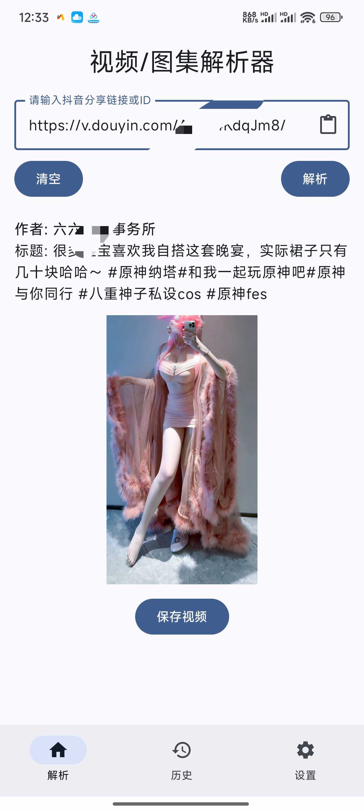 📢【软件名称】:dyparse 🎲【软件版本】:3.0 ⚖️【软件大小】:4.80M 🤖【适用平台】:安卓 抖音解析器是一款高效无水印提取工具,通过粘贴抖音链接即可一键解析并保存高清视频/图集,免登 ...