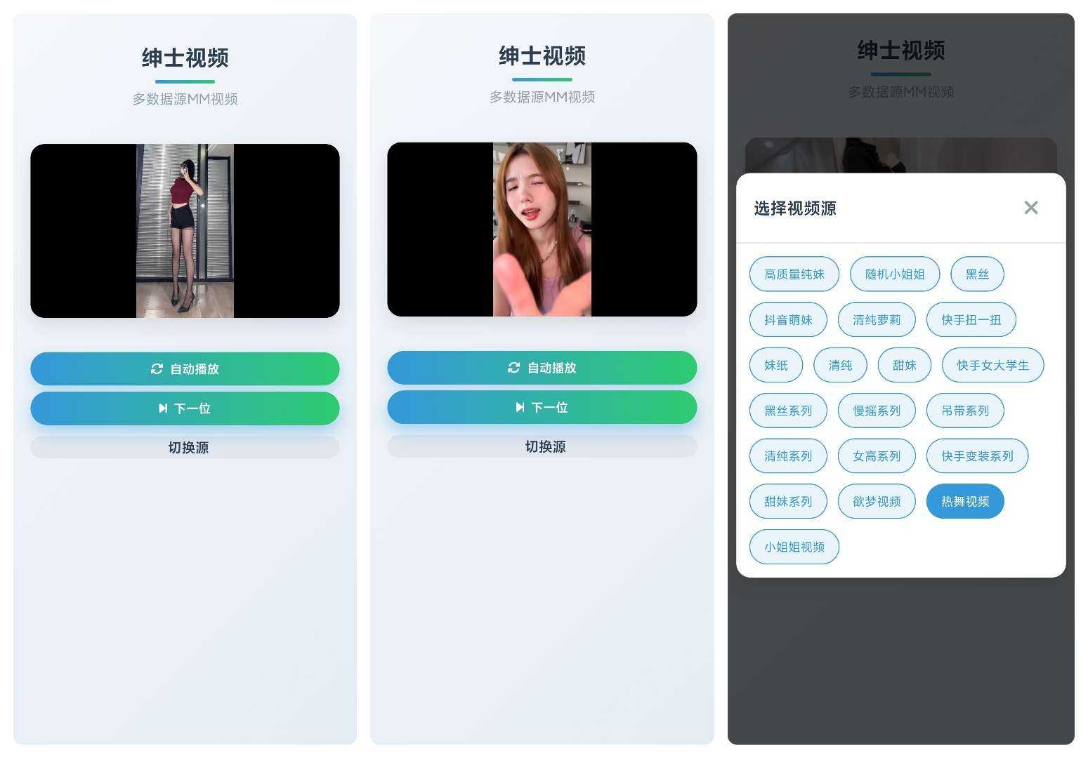 支持随机播放多个视频源的小姐姐视频 📢【应用名称】:绅士鸭 🔔【应用版本】:v1.0.0 👀【应用大小】:6 MB 🤖【适用平台】:Android 🗣️【软件介绍】 绅士鸭是一款专为 ...