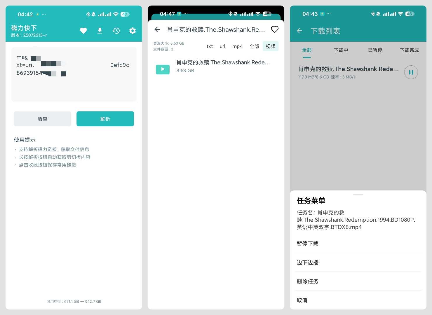 【应用名称】:磁力快下 【应用版本】:v25072615 【应用大小】:37 MB 【适用平台】:Android 【软件介绍】:磁力快下是一款专为快速解析和下载磁力资源设计的应用工具。它支持多种下载协议,包括HTTP、FTP、BT ...