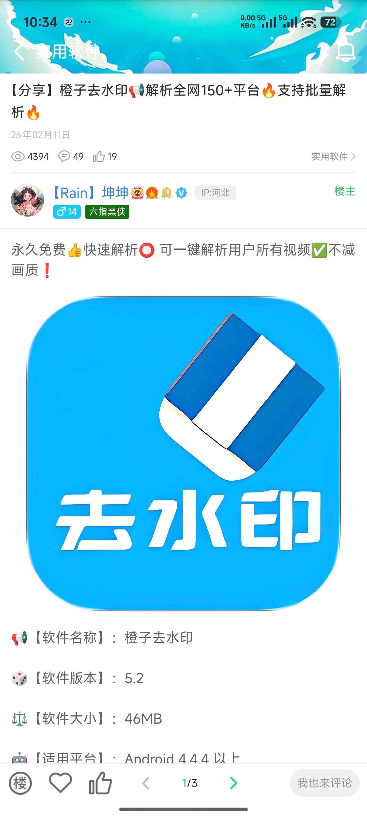 乐乐同学 [绿色软件] [分享]橙子去水印 解析全网150+平台 支持批量解 析 attach_img  ...23456..24