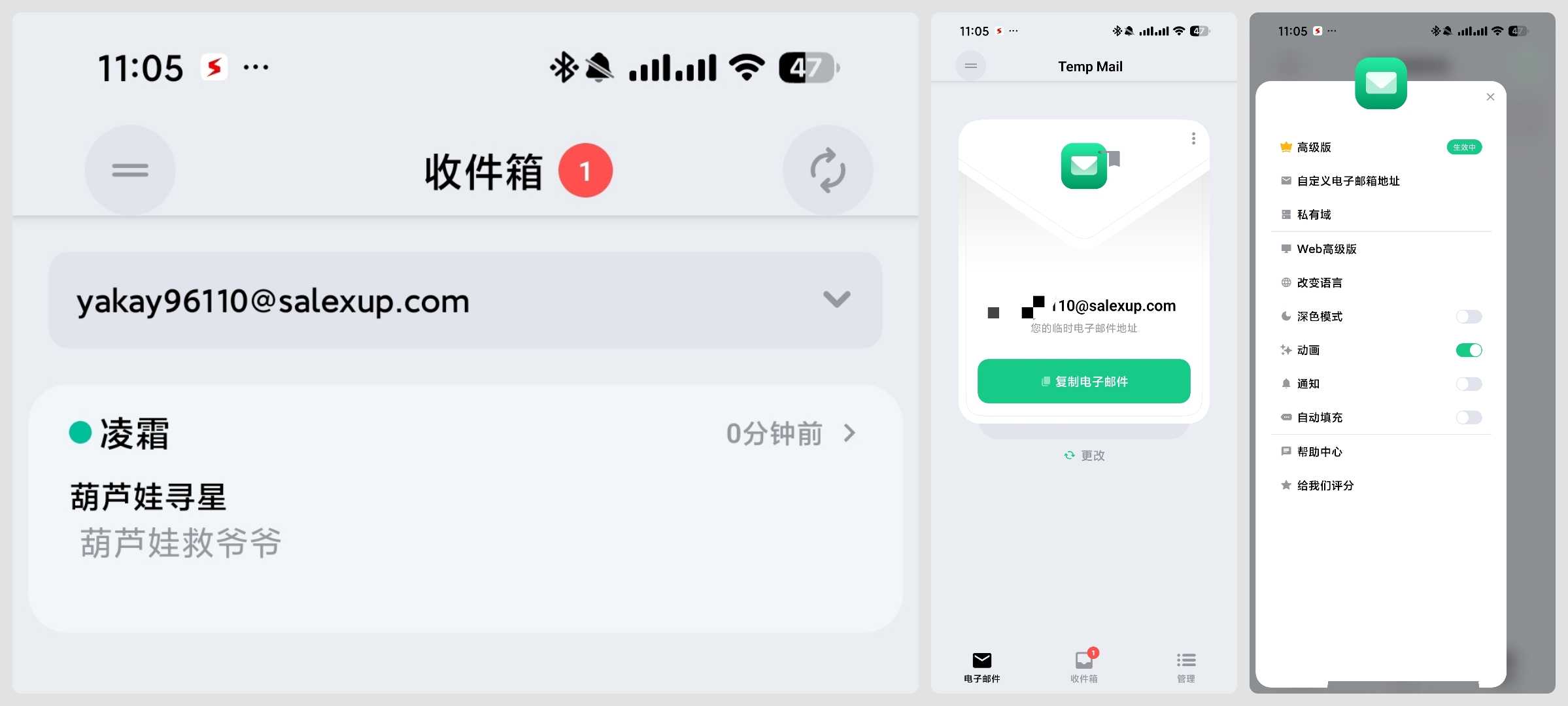 一次性邮箱,实测有效🔔可以用来注册一些临时用的账号,或者私密账号,还可以用来某些有试用期的软件用临时邮箱无限注册,实现永久使用 📢【应用名称】:Temp Mail 🔔【应用版本】:4.04  ...