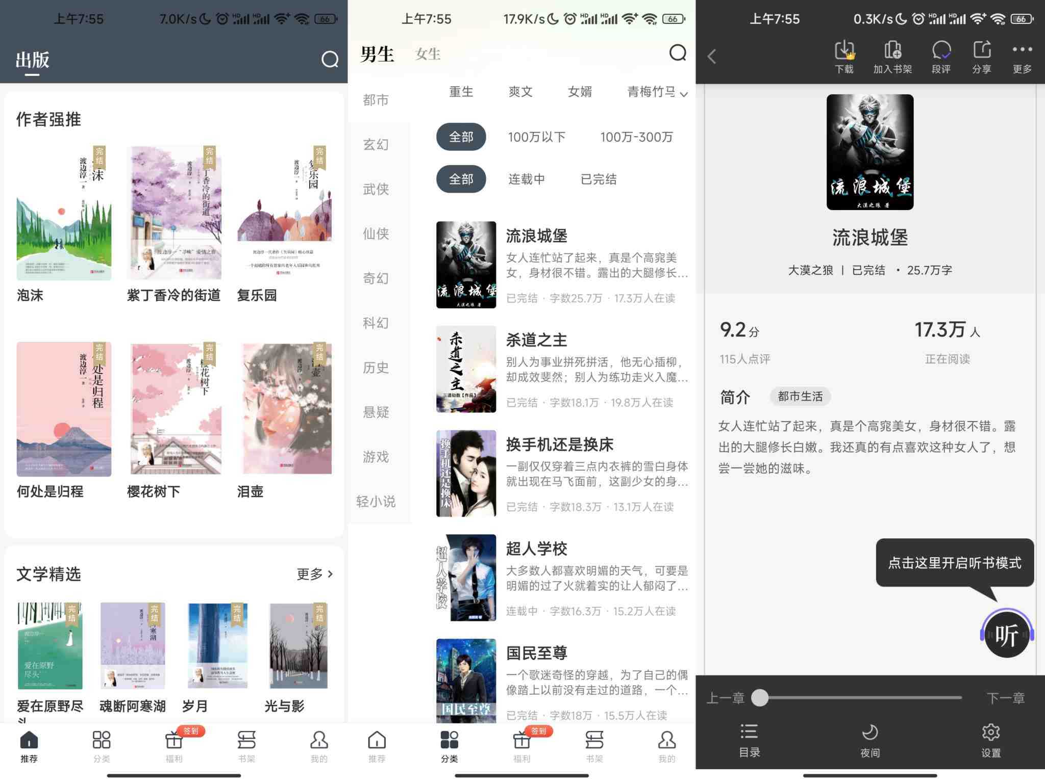 【软件名称】:苍云阅读 【软件版本】:1.5.3 【软件大小】:56.26M 【测试系统】:小米 【使用说明】:超全的精品书库,各种经典着作、热门网文、各种类型应有尽有,轻松缓存心仪小说,永久保存防止下架,阅读省电 ...