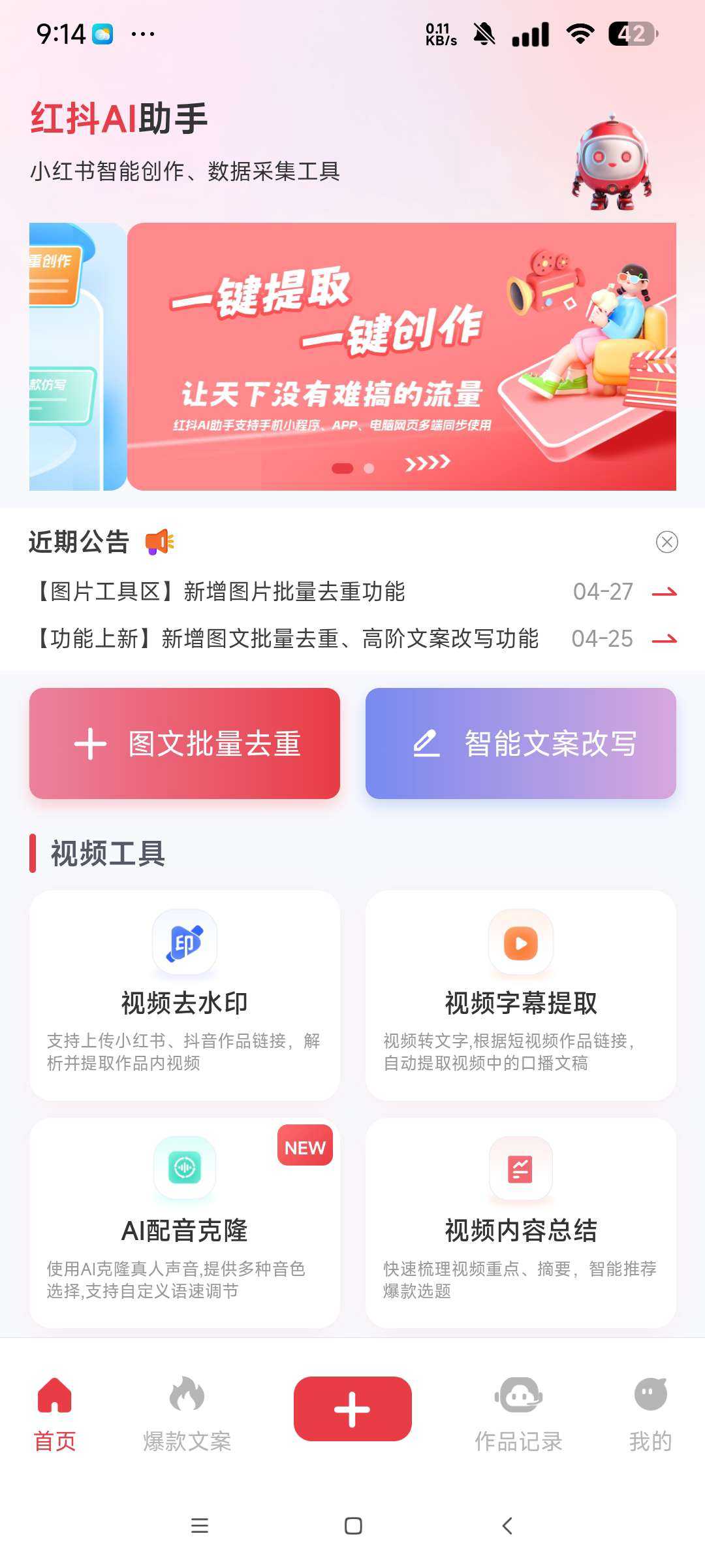 自媒体批量创作工具🔥 【应用名称】红抖Ai助手 【应用版本】2.9.1 【软件大小】17mb 【适用平台】安卓 【应用简介】红抖AI助手是一个自媒体AI批量创作工具,为广大的自媒体人带来了更多便利,能够快速实现不 ...