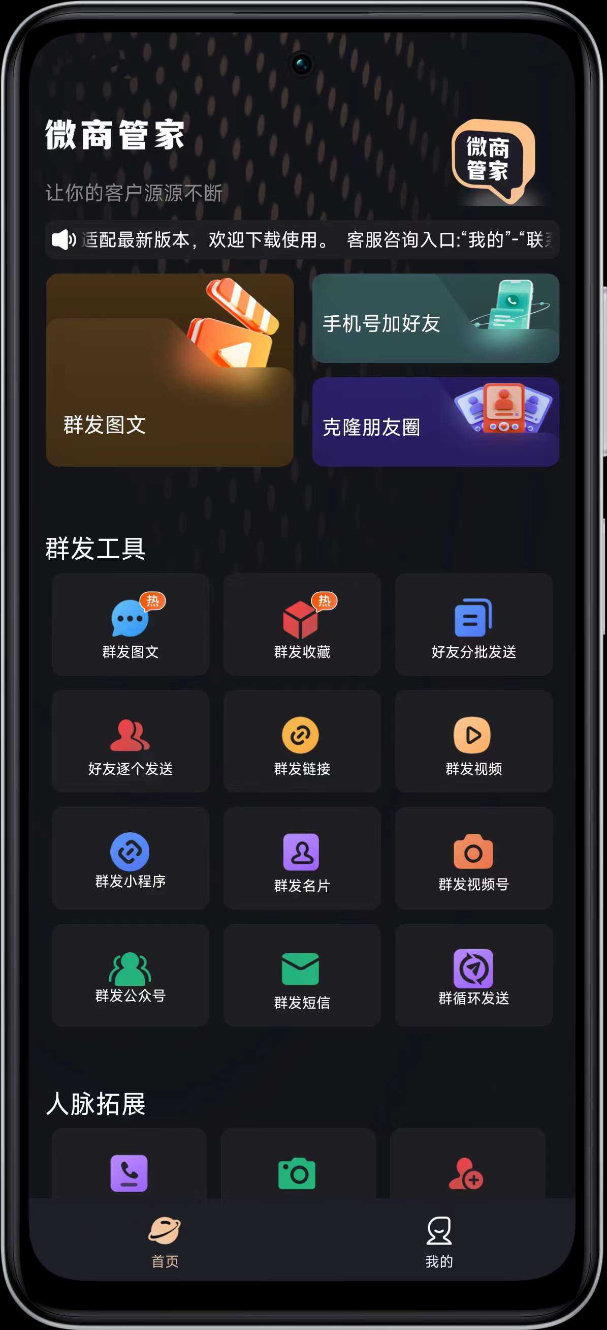 📢【软件名称】:微商管家 🎲【软件版本】:1.2.4 ⚖️【软件大小】:185.63MB 🤖【适用平台】:安卓 📜【软件介绍】:微商管家——微商的全能营销利器! 核心功能,高效运营 - 精准短视 ...