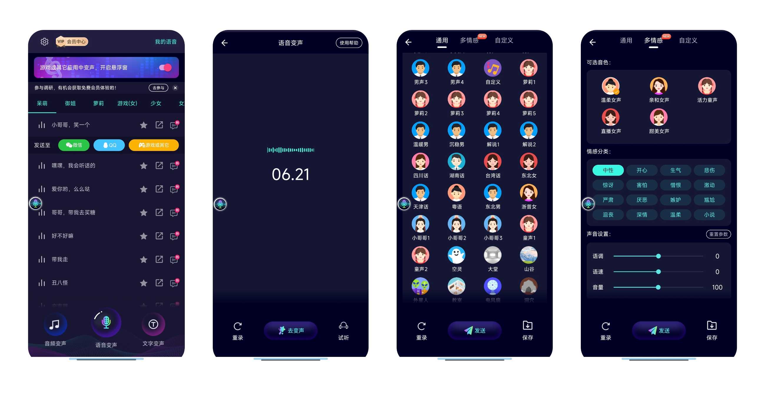 【应用名称】:变声器大师 【应用版本】:6.2.20 【应用大小】:162 MB 【适用平台】:Android 【软件介绍】:变声器大师是一款集变声器和录音机于一体的高品质声音处理器。它不仅支持多款热门游戏和社交软件( ...