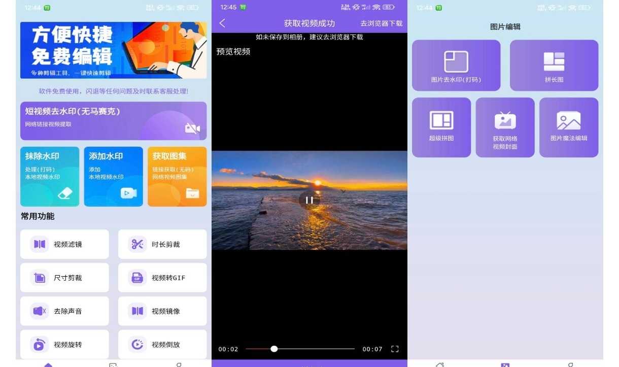 【软件名称】:免费视频去水印大师 【软件版本】:3.7.7 【软件大小】:67.47M 【测试系统】:小米 【使用说明】:一款手机工具App,免费视频去水印擦除大师,轻松去水印,编辑视频!提供视频去水印和编辑功能 ...