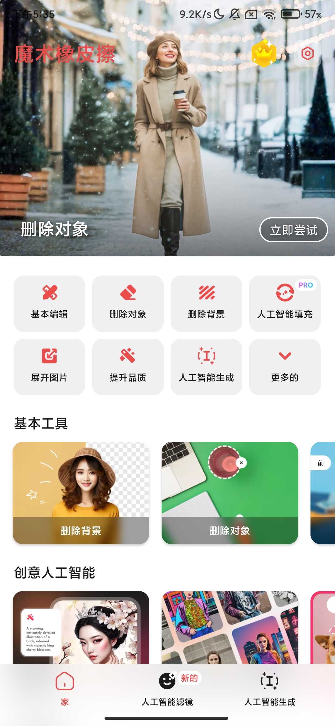 软件名称 魔术橡皮 软件大小13.19mb 软件版本2.25.13 适用版本安卓 软件介绍 这款智能修图神器APP,魔术橡皮功能强悍效果惊艳,智能识别物体一键去瑕疵,精准把控细节让画面完美,全场景适配满足各类需求,操作简单 ...