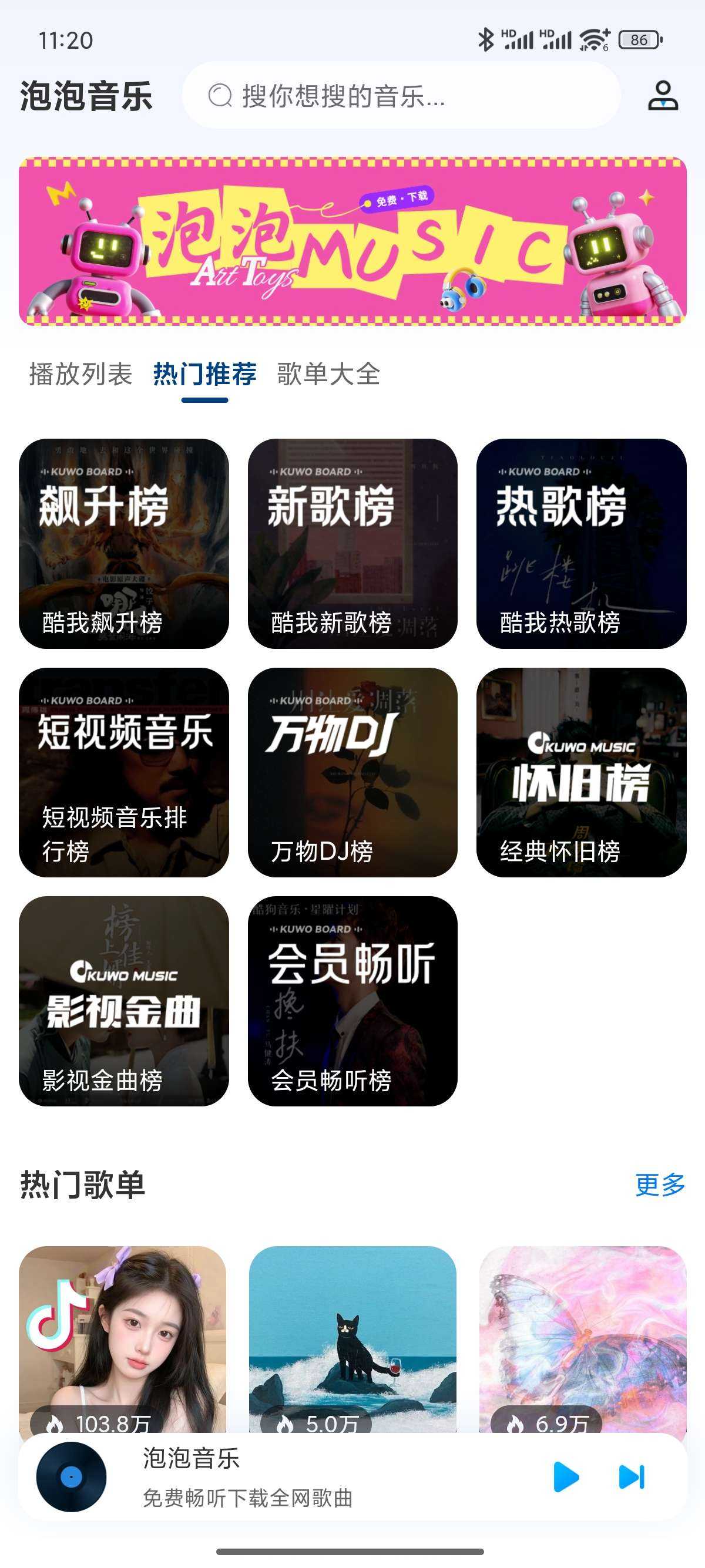 支持车载互联播放,蓝牙控制播放,会员歌曲免费畅听下载,评论送葫芦[玫瑰] 【应用名称】:泡泡音乐 【应用版本】:1.0.0 【应用大小】:20M 【测试机型】:小米14 【软件介绍】:  泡泡音乐是 ...