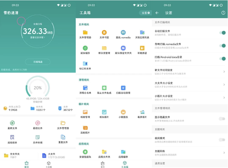 软件介绍目前评分很高的一款安卓垃圾清理工具,特色功能自动扫全盘,扫描速度超快,智能文件分类,一建清理垃圾,这款安卓11内存垃圾清理工具支持访问安卓13的/Android/data目录,缓存清理,文件管理等. 软件特点1、文件秒 ...