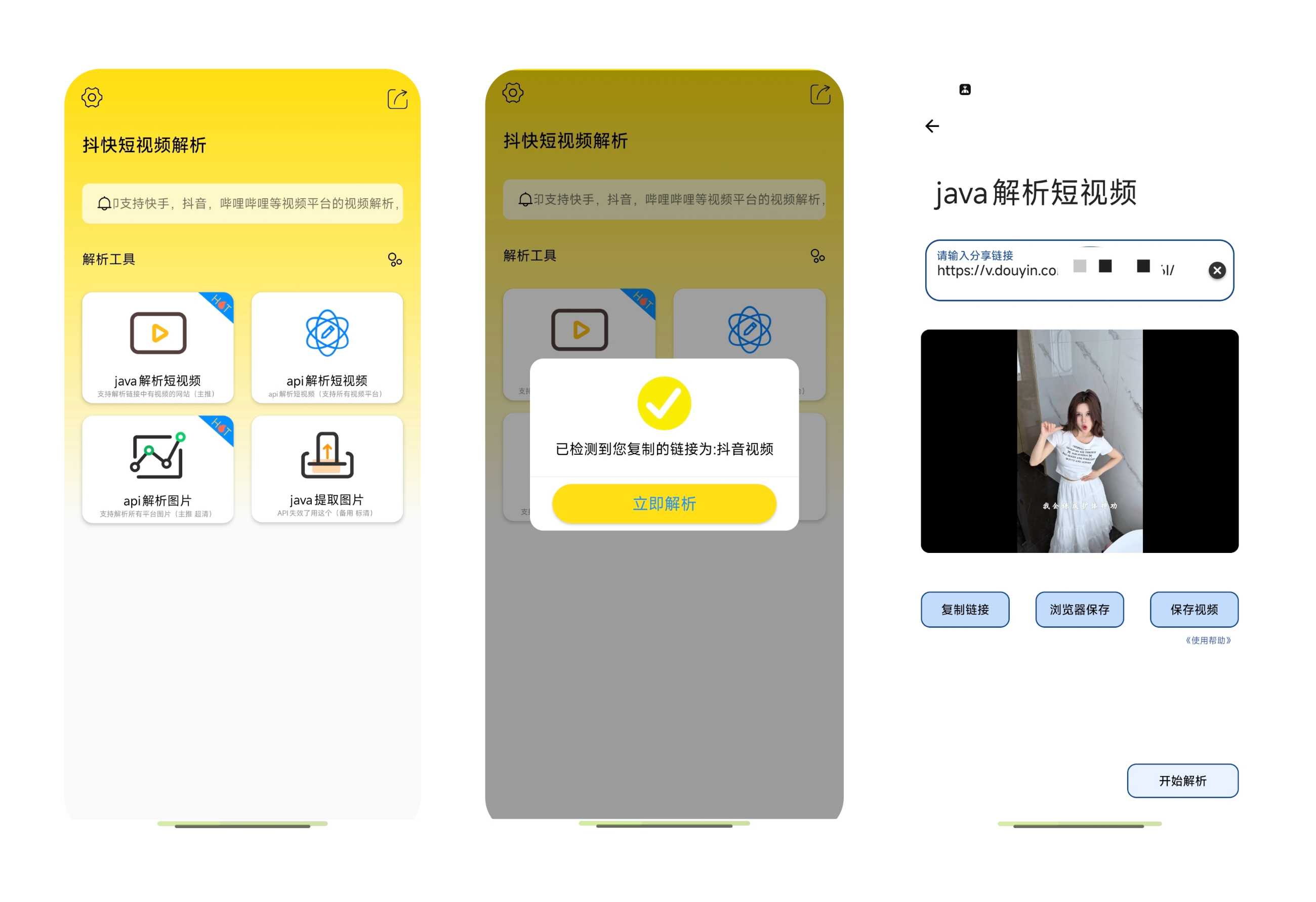 【应用名称】:抖快短视频解析 【应用版本】:5.0 【应用大小】:8.6 MB 【适用平台】:Android 【软件介绍】:抖快短视频解析可以让您‘免费’且‘无需登录’即可【无水印】保存短视频。此APP拥有由隆网科技团 ...