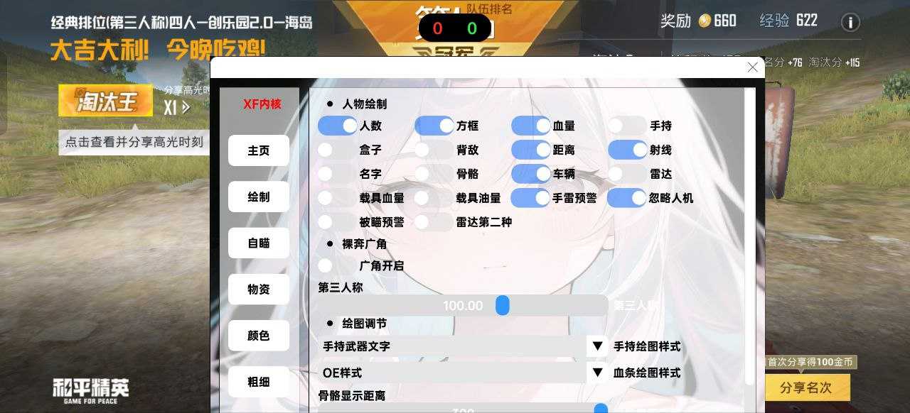 XF渲染掩体漏打🌱细节功能: 🌹 🌱功能:支持观战透视🌱功能:所有绘图颜色 自定义可调,人物:物资-队编-距离 骨骼-方框~ 🌱功能:腰射喷子锁,狙击自瞄、开火锁定☞开镜锁定(掩体漏打 ...
