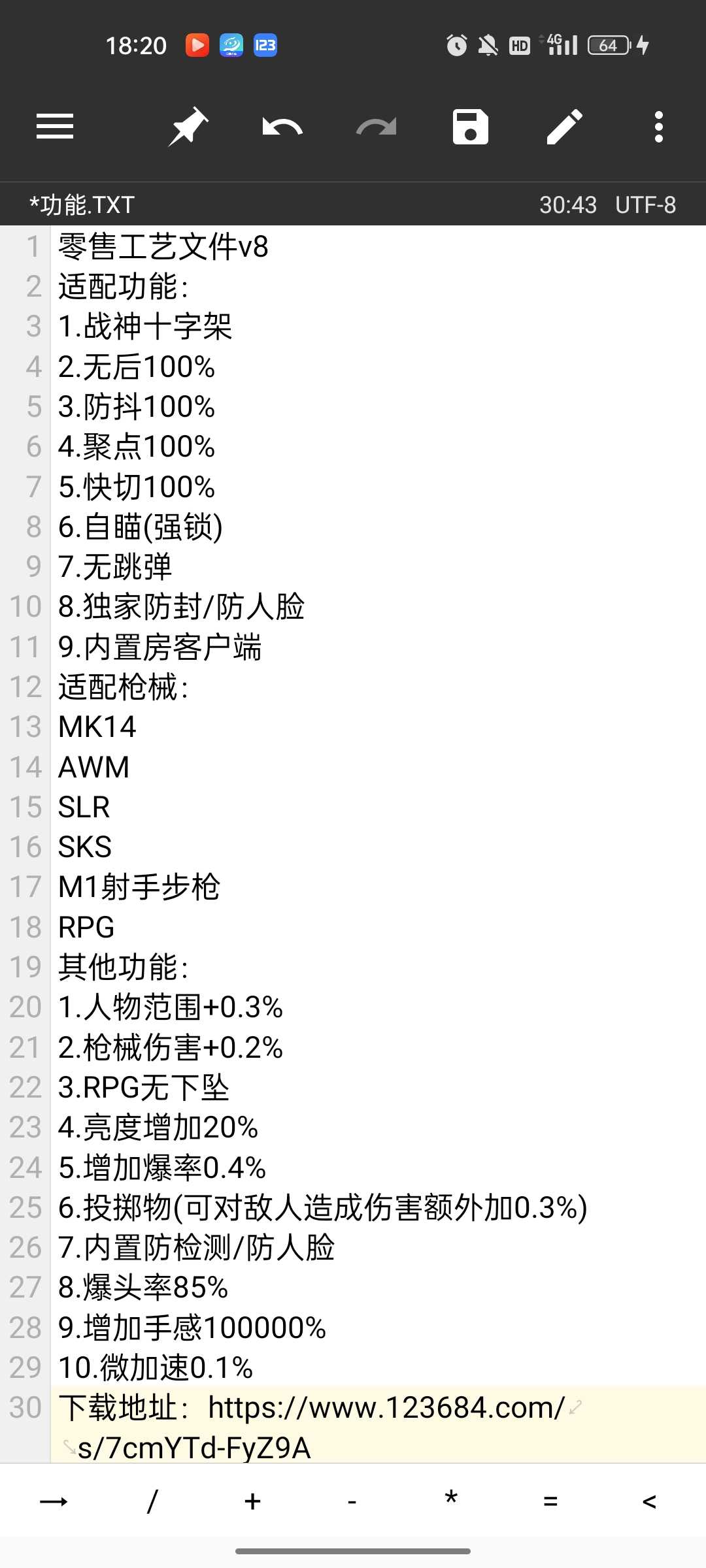 修复卡屏 绘制名字字体加大 绘制手持字体加大 添加过直播录屏开关 修复和平忽略人机问题 PUBG添加类名自瞄(就是自瞄惩戒者boss) 拿走吱吱一声 链接:https://pan.baidu.com/s/1HjefEClWLRUsahwQYqzong  提取码:8 ...