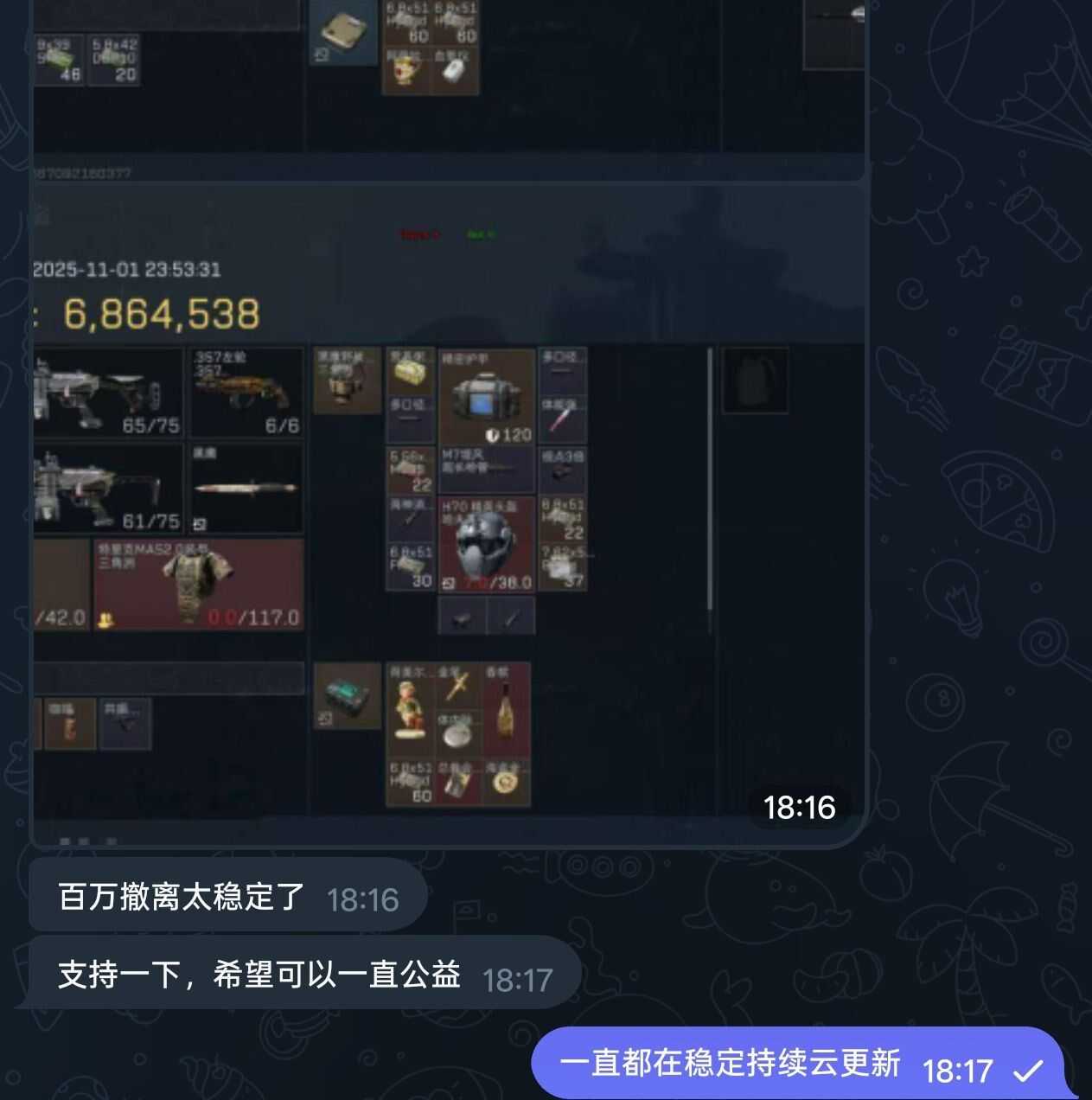 更新功能修复一直所有问题夜视修复绘制修复显棺修复传送修复 拿走吱吱一声 链接: https://drive.uc.cn/s/f255298bdc894?public=1